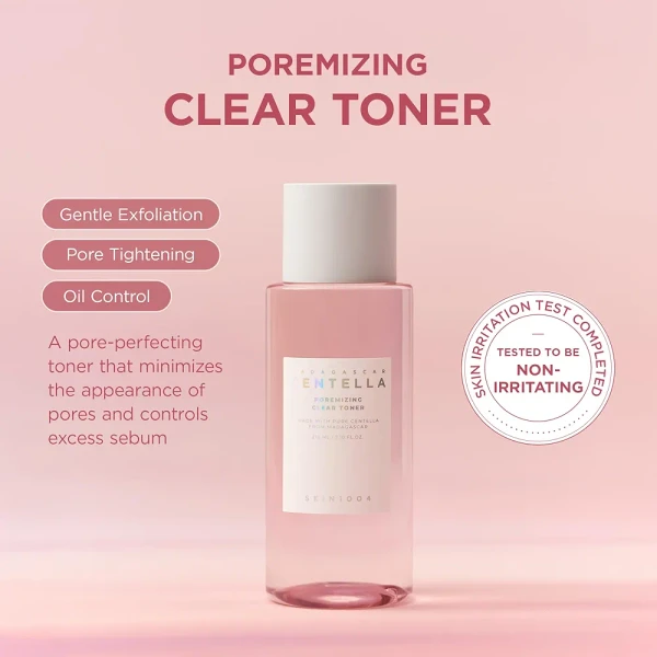تونر تمیزکننده منافذ سنتلا ماداگاسکار از برند اسکین 1004 محصولی بینظیر برای پاکسازی عمیق پوست و کاهش اندازه منافذ است. این تونر با عصاره گیاه سنتلا آسیاتیکا (Centella Asiatica) از ماداگاسکار ساخته شده که به خواص تسکیندهنده و ترمیمکننده پوست شهرت دارد. اگر به دنبال محصولی هستید که علاوه بر تمیز کردن پوست، آبرسانی و تغذیه لازم را فراهم کند، این تونر انتخابی ایدهآل خواهد بود.