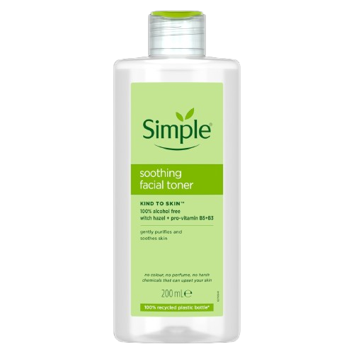 تونر سیمپل مدل kind to skin حاوی آلانتوئین، عصاره فندوق افسونگر و ویتامین B5 است. استفاده از تونر سیمپل برای همه پوست ها حتی پوست های حساس نیز مناسب است. این تونر می تواند علاوه بر کمکی که به تنظیم pH پوست شما میکند، برای آبرسانی پوست شما نیز بسیار مفید بوده و به تسکین پوست شما نیز سرعت میبخشد. این تونر یک محصول عالی برای کمک به سلامت پوست و پاکسازی آن می باشد که به دلیل عدم استفاده از ترکیبات شیمیایی مختلف مانند الکل و پارابن، برای پوست های حساس نیز مفید است.