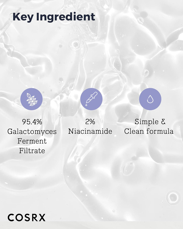 ماده کلیدی این محصول گالاکتومایسس با غلظت ۹۵% است که به روشن شدن پوست خسته و کدر کمک میکند و در عین حال خاصیت آبرسانی و آنتیاکسیدان نیز دارد.