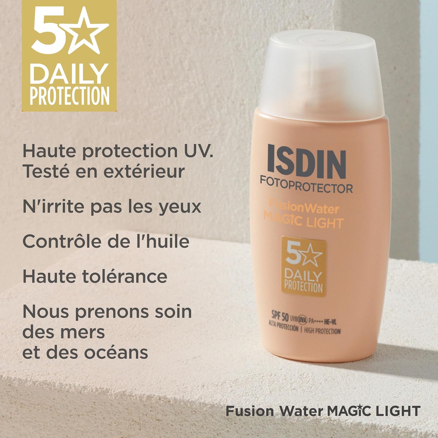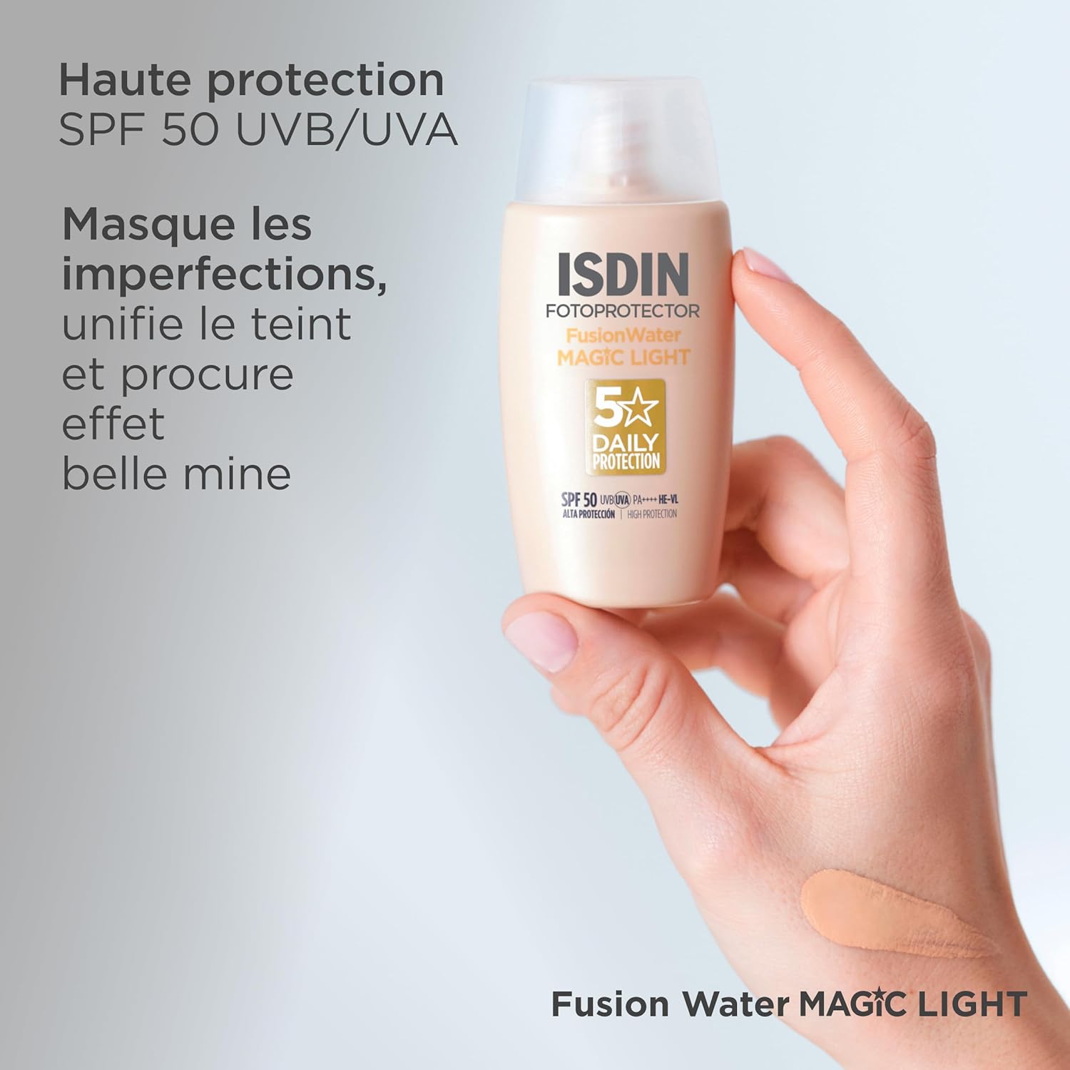 فیوژن واتر MAGIC Light SPF 50 برای یکسان کردن پوست های روشن تر طراحی شده است و برای فتوتیپ های I و II ایده آل است. به لطف ته رنگ خنثی، به راحتی با رنگ های مختلف پوست سازگار می شود.
