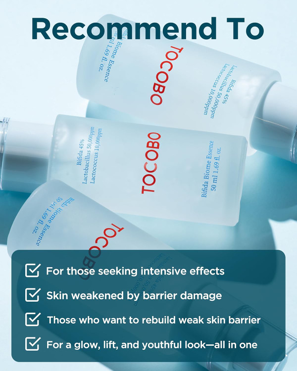 سرم ضدچروک و روشن کننده بیفیدا بیوم Bifida Biome توکوبو TOCOBO سرشار از پروبیوتیک های بیفیدا بیوم، لاکتوباسیلوس و لاکتوکوکوس میباشد که مطالعات نشان داده اند که به جلوگیری از آسیب پوست در اثر قرار گرفتن در معرض نور UV، آبرسانی به پوست و تقویت سیستم ایمنی پوست کمک میکند. کمپلکس بیفیدا بیوم به تسکین التهاب و کاهش خشکی پوست کمک کرده، شرایط پوستی بهینه را پیدا می کند و سد ضعیف پوست را تقویت می کند تا پوست را الاستیک کند.