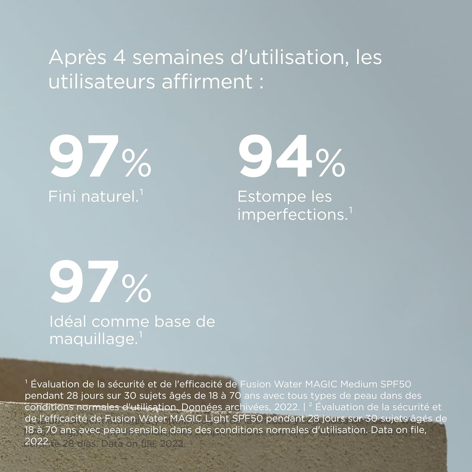 با فیوژن واتر MAGIC متوسط SPF 50 عیوب را پنهان کنید، رنگ پوست یکپارچه را به نمایش بگذارید و از جلوه زیبای آن لذت ببرید.