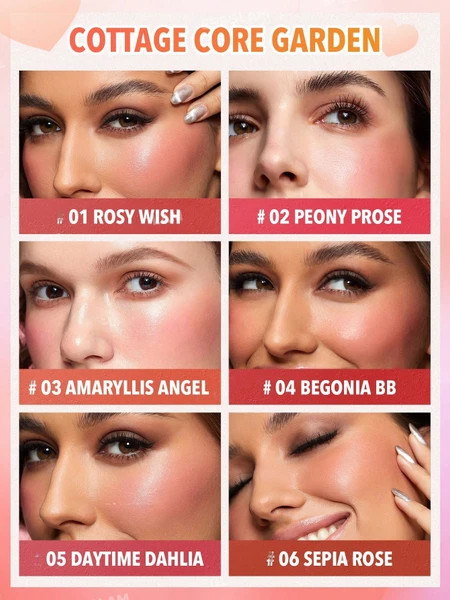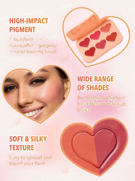 پالت رژگونه قلبی Cottage Core Garden شیگلم Sheglam پیگمنت و رنگدانههای قوی دارد و بدون ایجاد لک روی پوست، به خوبی ترکیب میشود و جلوهای طبیعی به صورت میبخشد. این ویژگیها باعث میشوند که رژگونه در طول روز بدون نیاز به تجدید مکرر قابل استفاده باشد. جلوه نهایی رژگونه شیگلم بسیار طبیعی است.