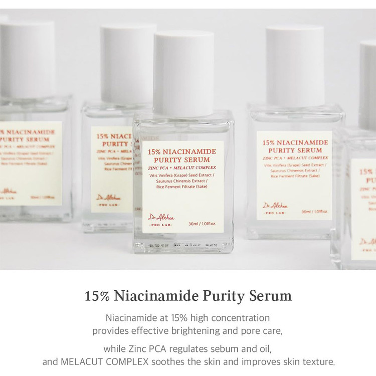 نیاسینامید 15% (ویتامین B3): کمک میکنه تا پوست روشن تر بشه، التهاب و قرمزی رو کاهش می ده و منافذ رو کوچیک تر می کنه.