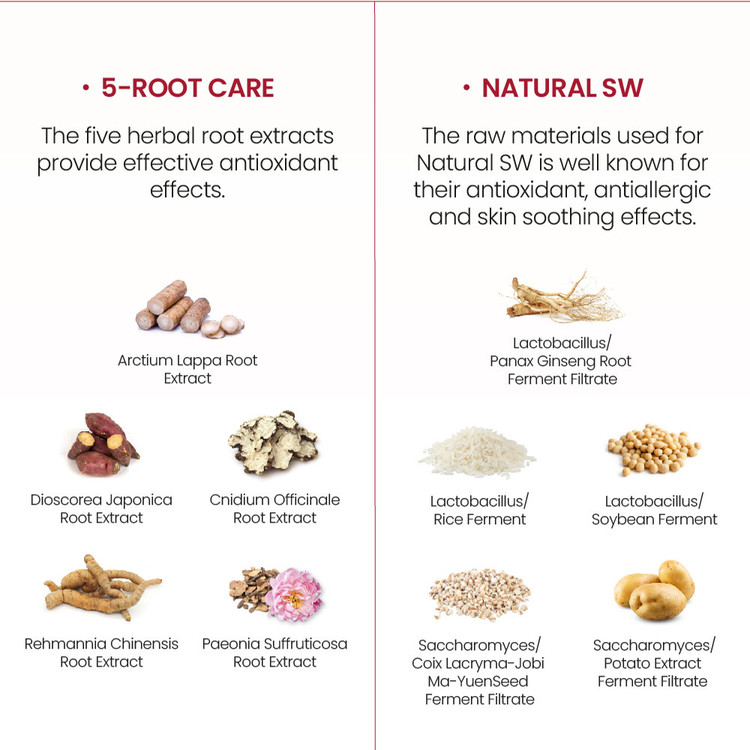 - فیلتر تخمیر ریشه جینسینگ: به تسکین و آرامش پوست کمک میکند.