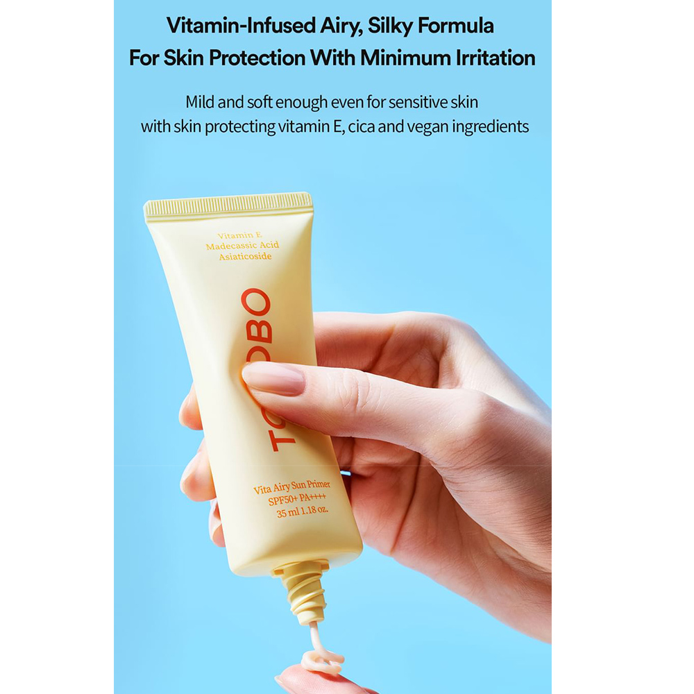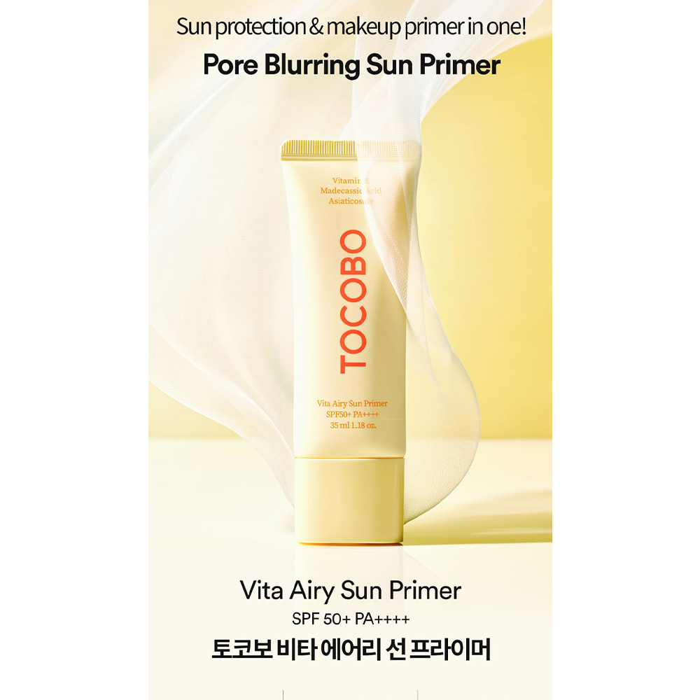 ضد آفتاب ویتا پرایمر توکوبو یک محصول چند منظوره است که در کنار مزایای پرایمر، محافظت کاملی در برابر اشعههای مضر UVA و UVB با SPF50+ فراهم میسازد. این برای محو کردن منافذ، حتی بافت پوست و ایجاد یک پایه صاف برای آرایش طراحی شده است. فرمول این محصول سبک، ضد آب است و شامل موادی مانند اسید مادکاسیک و آسیاتیکوزید برای تسکین و تقویت سد پوستی است. همچنین به عنوان یک پرایمر شیمیایی وگان خورشید توصیف می شود.