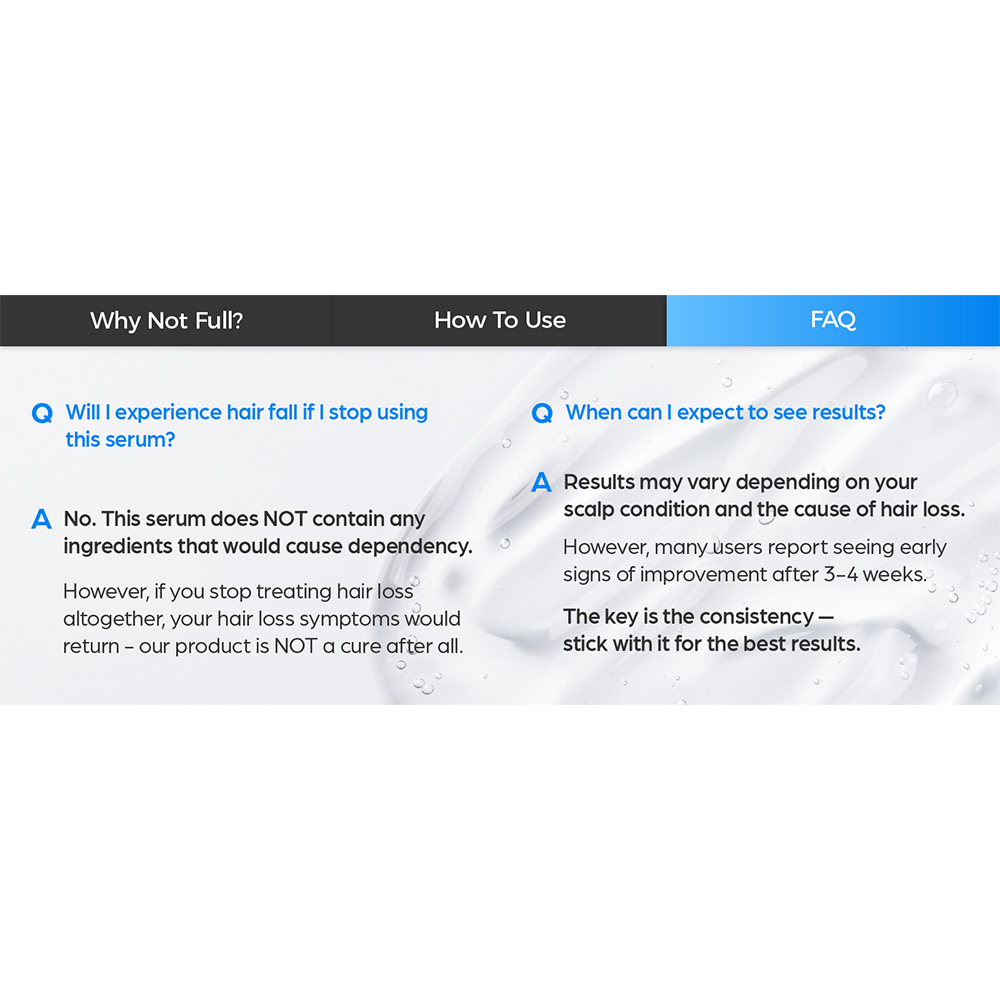 - فرمولاسیون تقویتکننده و ضد ریزش: این سرم با ترکیبات فعال کلیدی که به صورت بالینی تست شدهاند، به فعالسازی فولیکولهای غیرفعال، معکوس کردن نازک شدن مو و جلوگیری از ریزش مو کمک میکند.