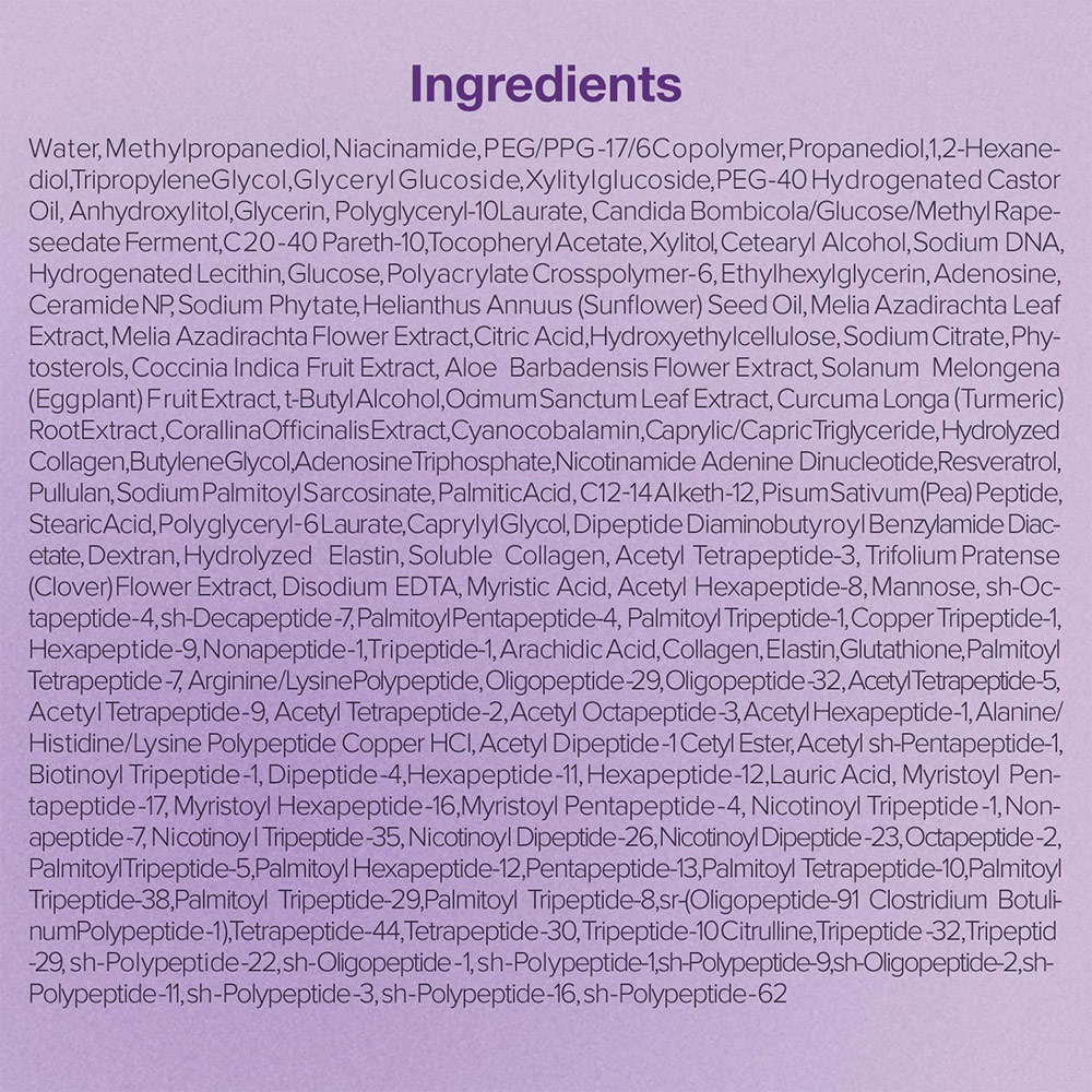 - 50 نوع پپتید: این مجموعه جامع از پپتیدها، به عمق پوست نفوذ کرده و به طور موثری به رفع افتادگی و کاهش عمق منافذ باز کمک میکنند. پپتیدها همچنین به بازسازی بافت پوست و افزایش سفتی آن منجر میشوند.
