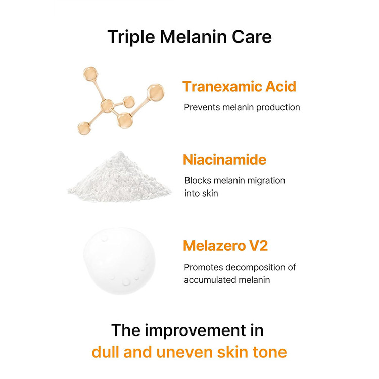 ترانگزامیک اسید 3%: با کاهش تولید ملانین از ایجاد لکه های جدید جلوگیری کرده و جای جوش ها را ترمیم می کند.