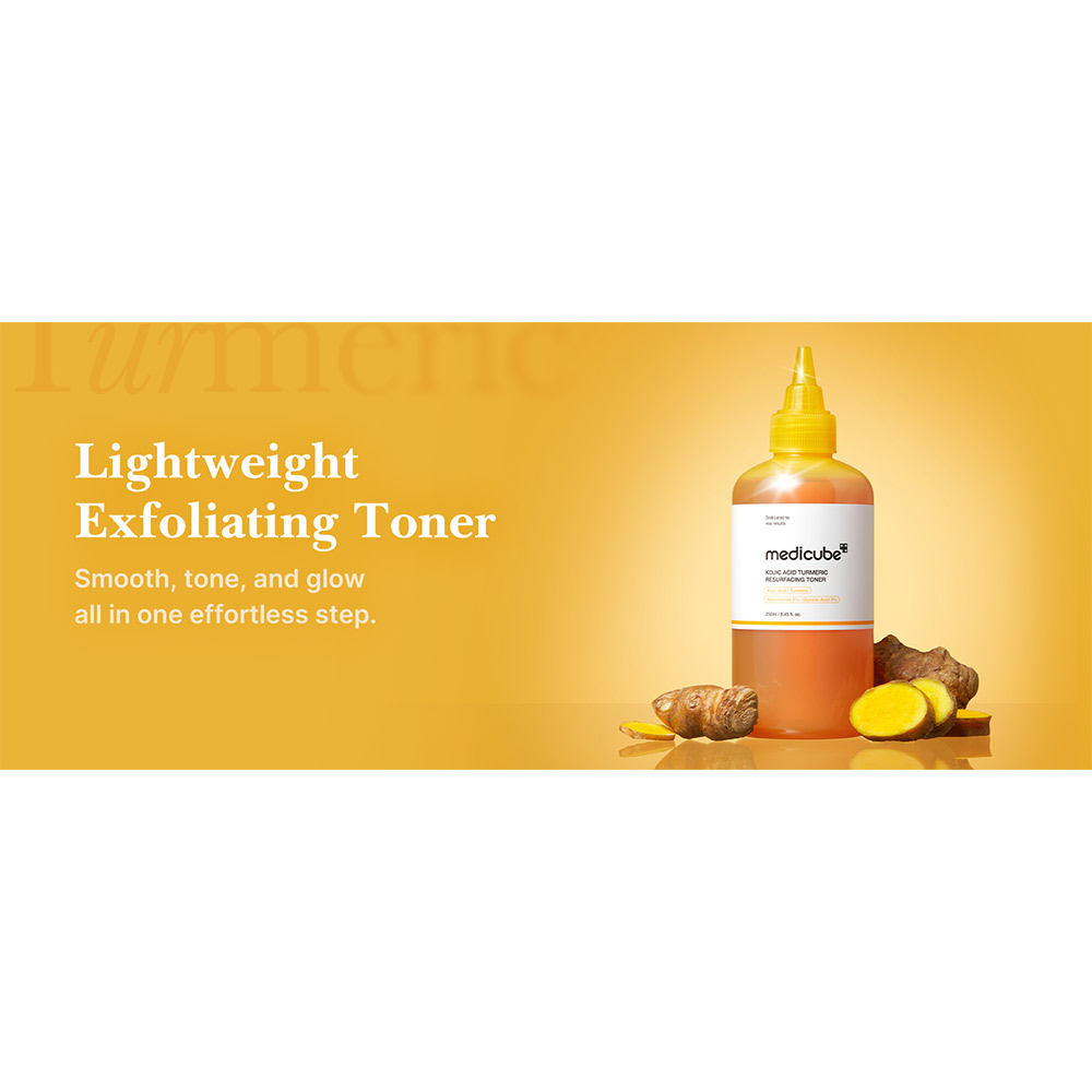 تونر کوجیک اسید و زردچوبه مدی کیوب (MEDICUBE Kojic Acid Turmeric Resurfacing Toner)این تونر تخصصی از برند کرهای Medicube، یک محصول درمانی روزانه است که به طور همزمان روی روشنسازی، اصلاح رنگ و بهبود بافت پوست تمرکز دارد. این تونر به عنوان اولین گام درمانی بعد از پاکسازی صورت استفاده میشود تا پوست را برای دریافت مواد مغذی آماده کند.